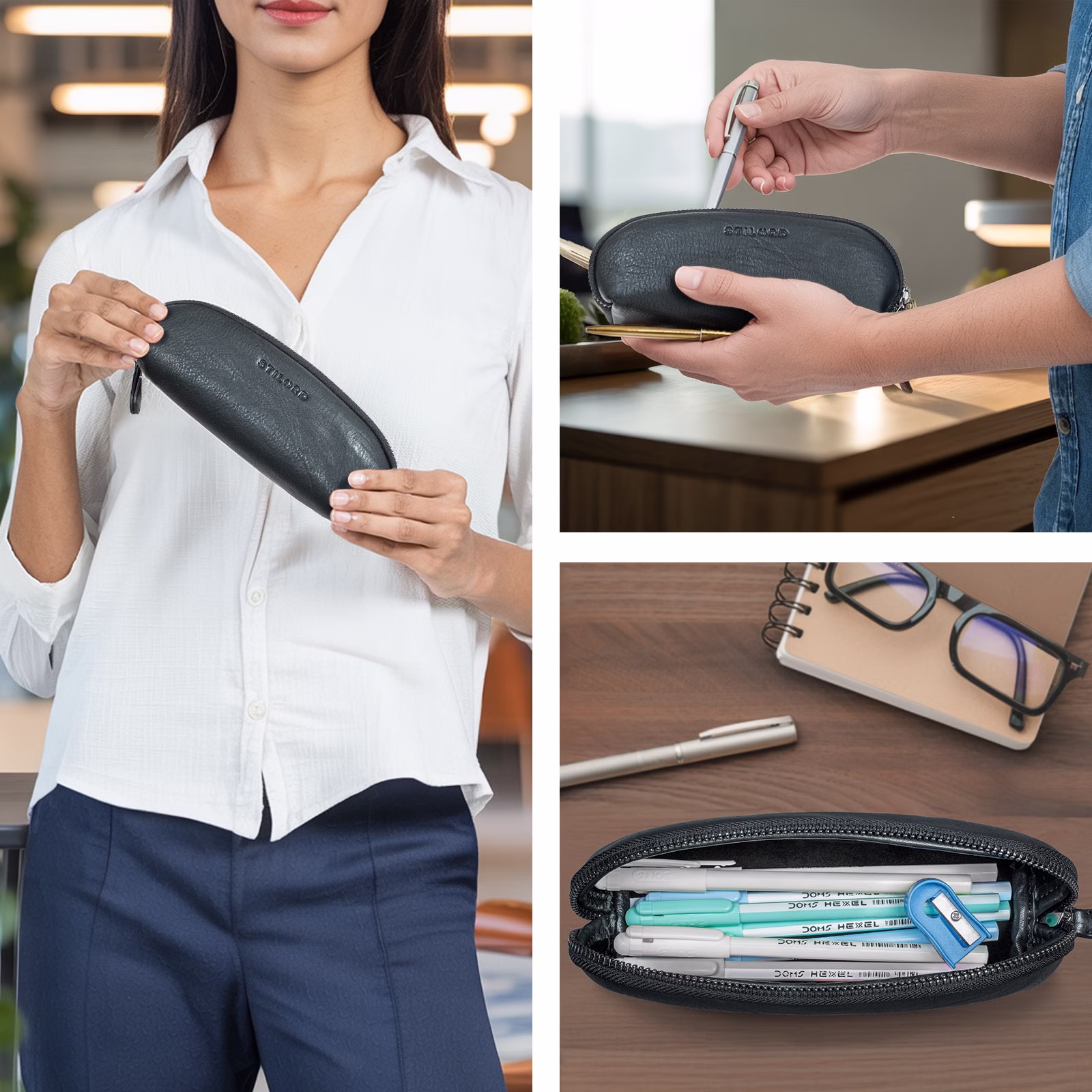 "Leano" Piccolo Astuccio in Pelle con Cerniera per Penne e Evidenziatori
