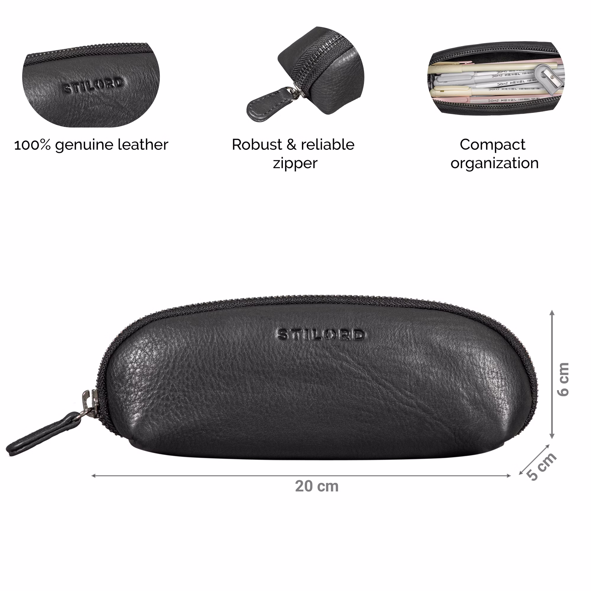 - DETTAGLI: Dimensioni: 20 x 5 x 6 cm | Peso: 100 g | Materiale: vera pelle bovina | Modello: "Leano" | Marca: STILORD | Compatibilità: penne, evidenziatori, strumenti di scrittura | Caratteristiche: design semplice e senza tempo, cerniera di qualità, pelle resistente