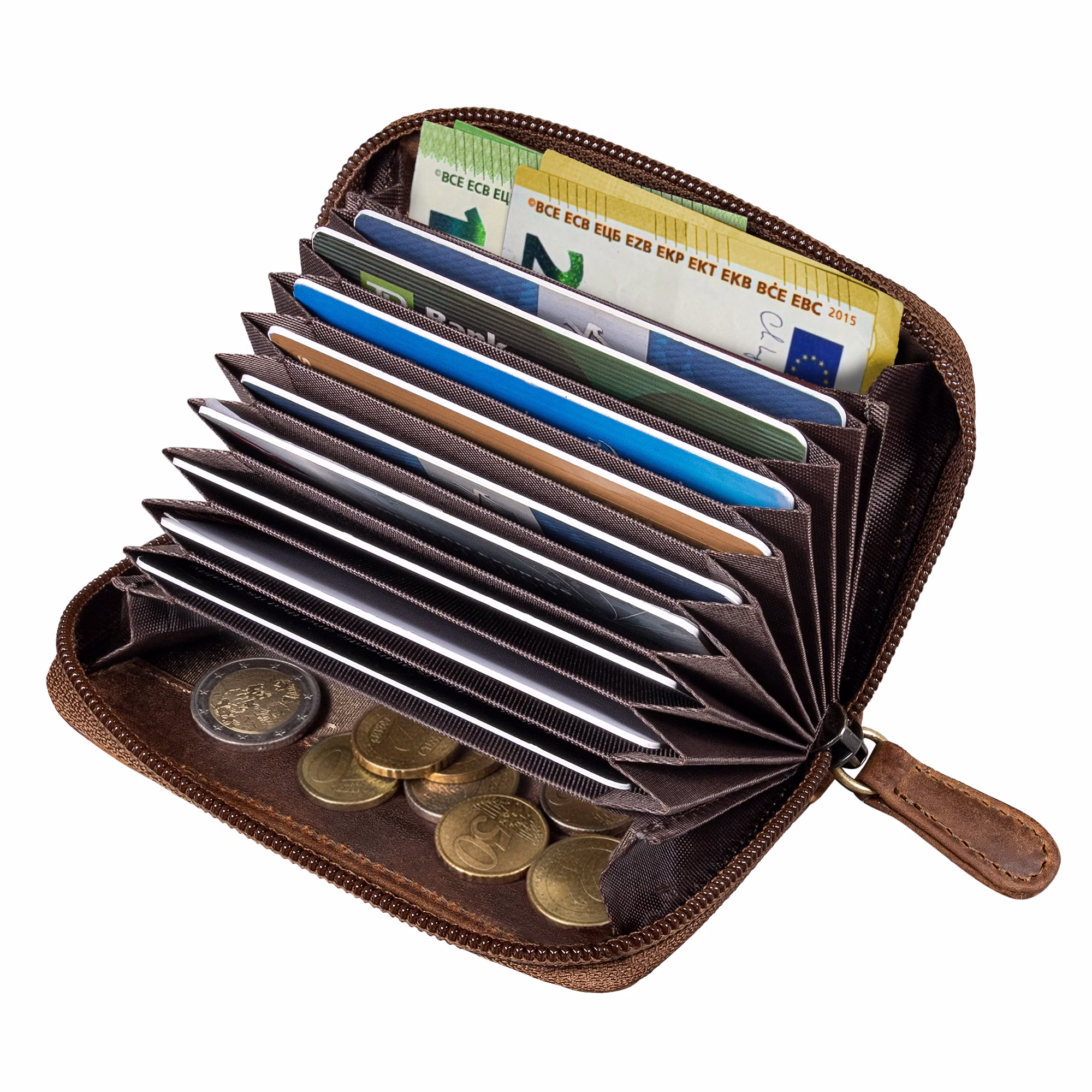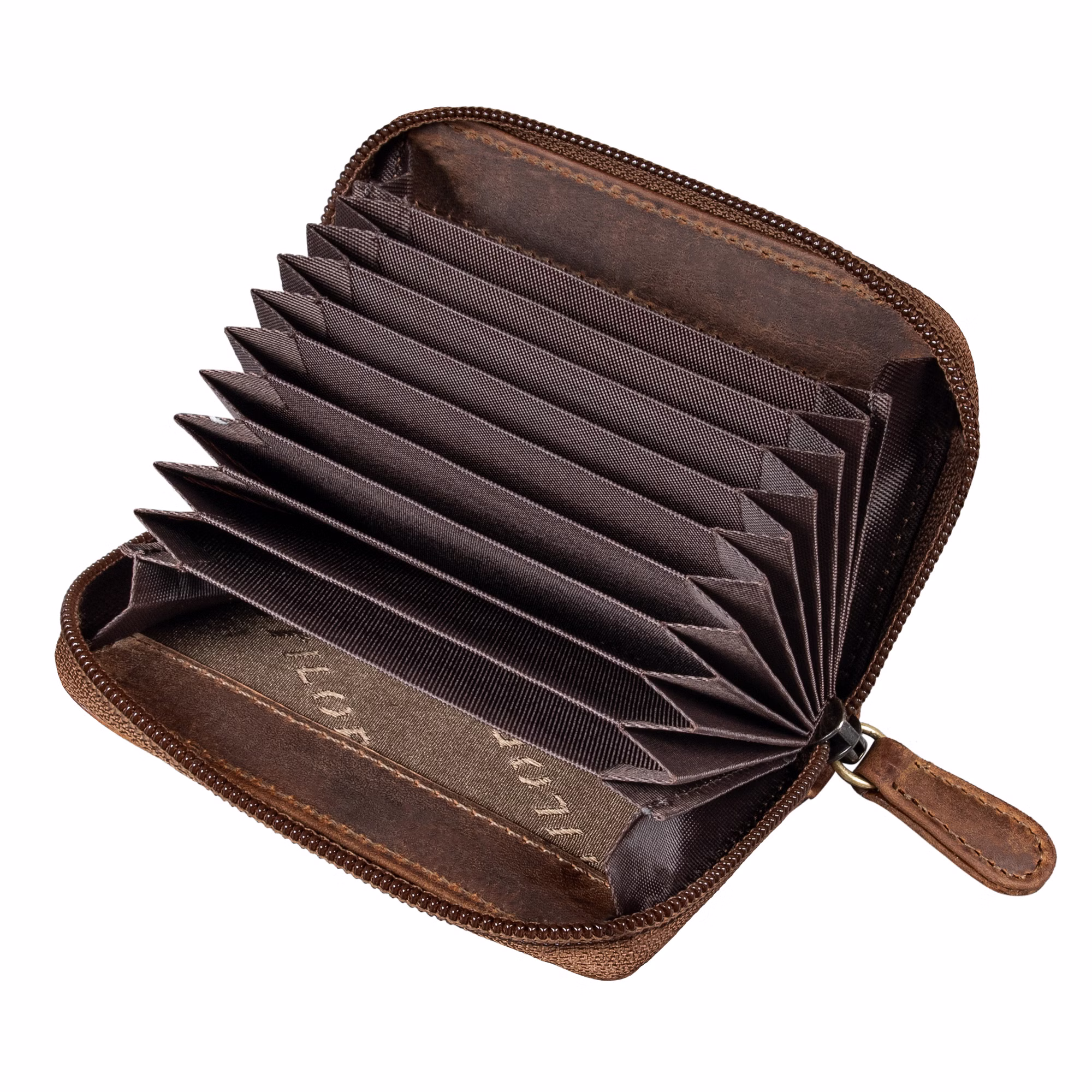 "Luxor" Porta Carte di Credito Uomo Pelle a Fisarmonica con 9 Scomparti , Cerniera, RFID