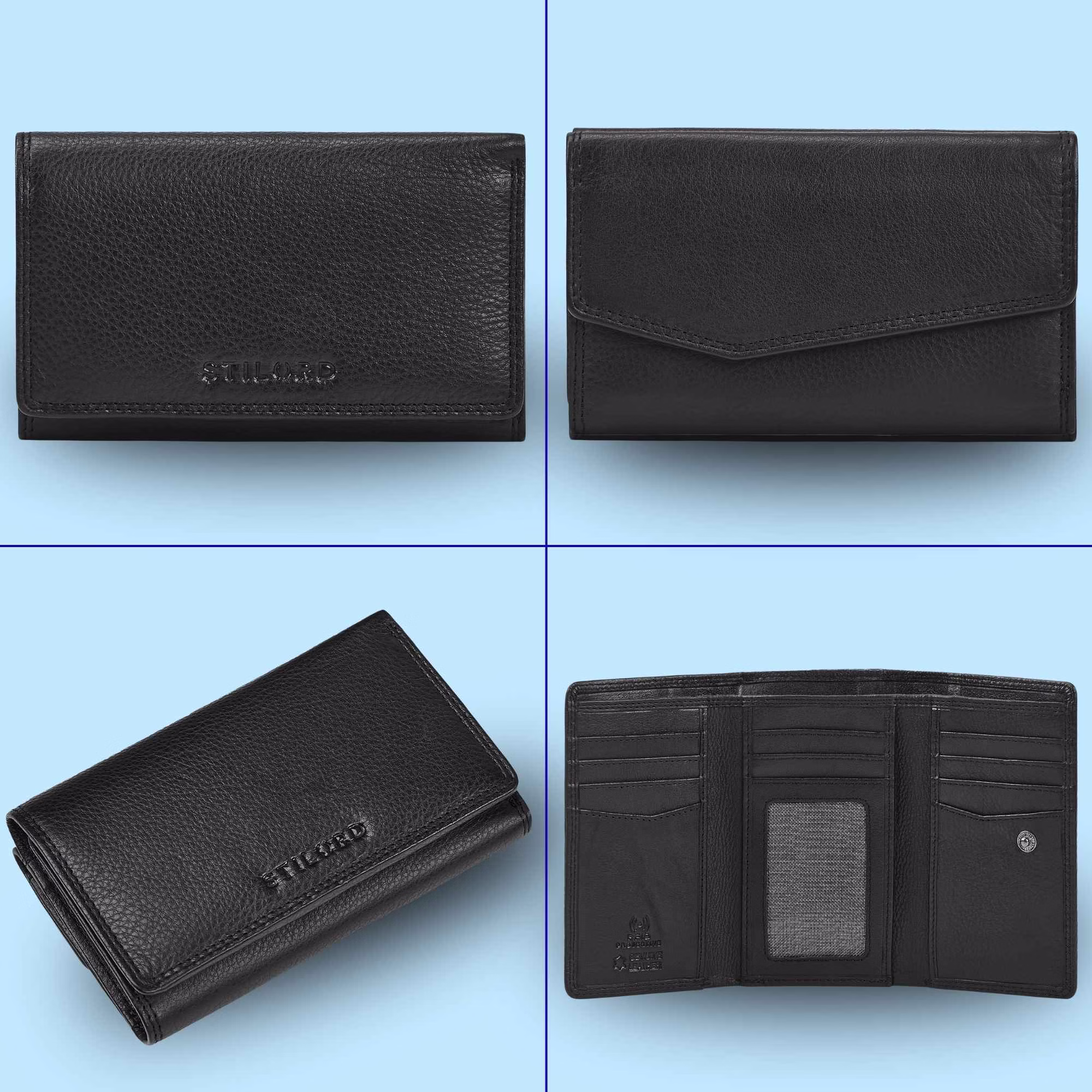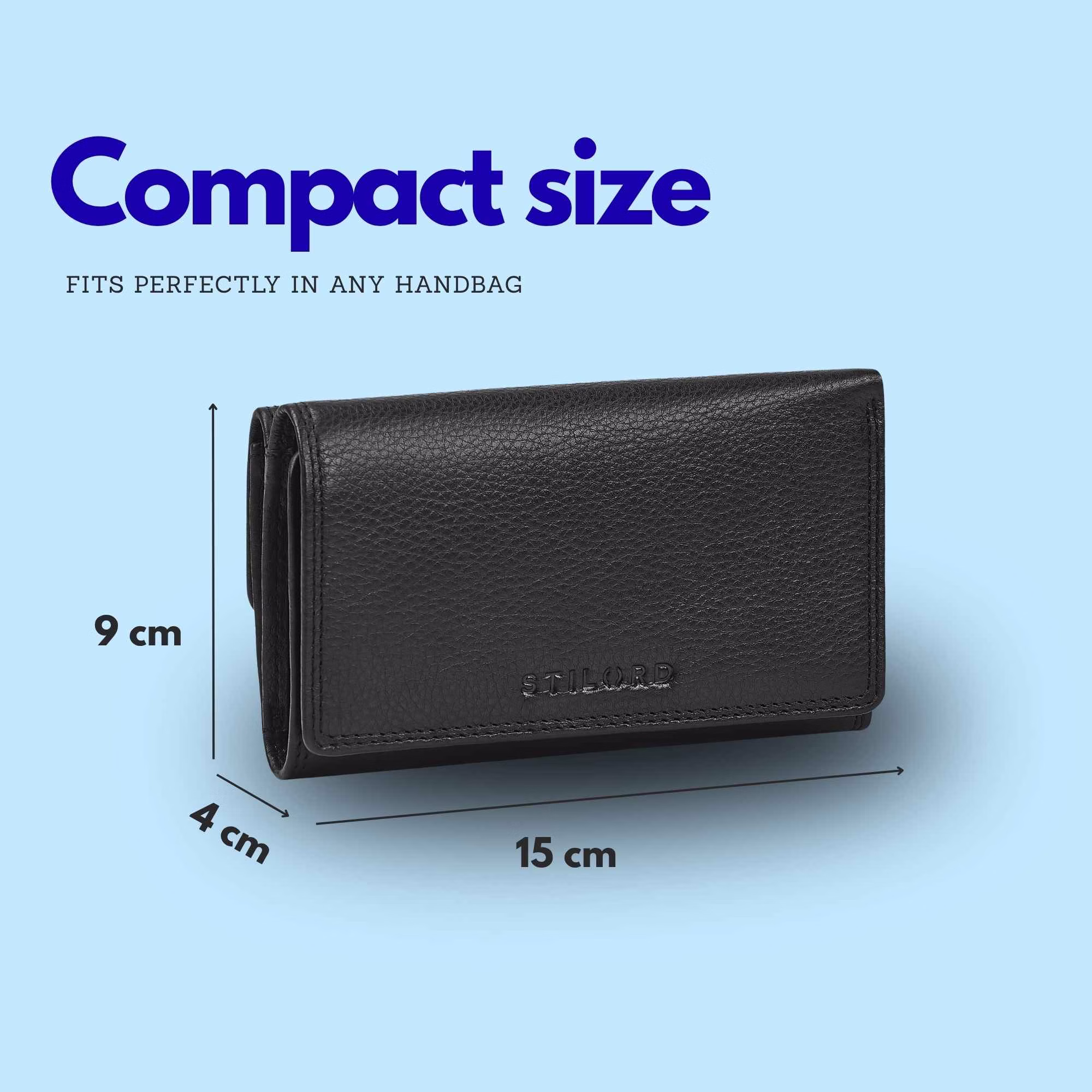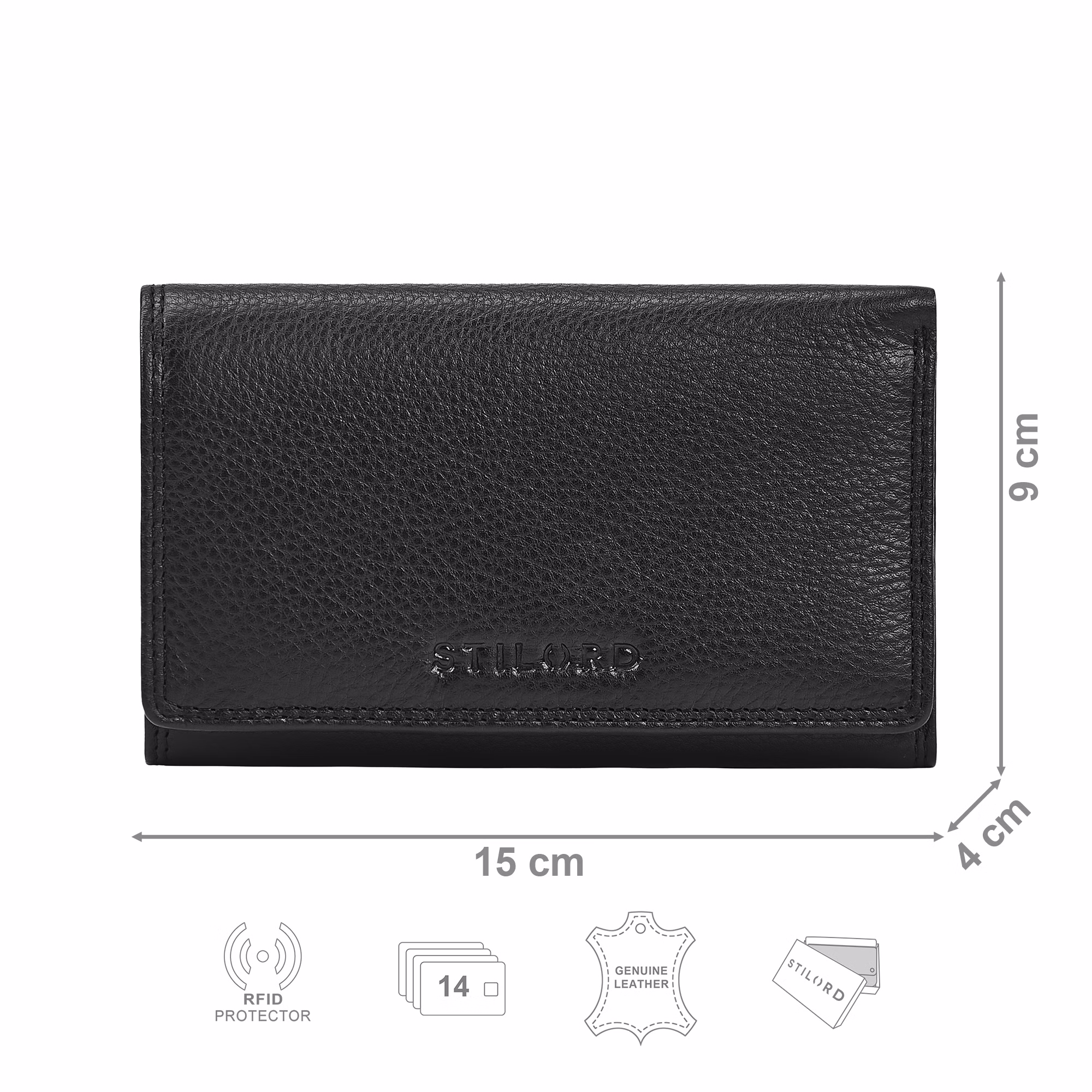 - DETTAGLI PRODOTTO: Misure: 15 x 4 x 9 cm | Peso: 230 g | Modello: "Daria" | Materiale: Cuoio autentico di mucca | Marca: STILORD | Caratteristiche: con blocco RFID/ NFC, chip da supermercato