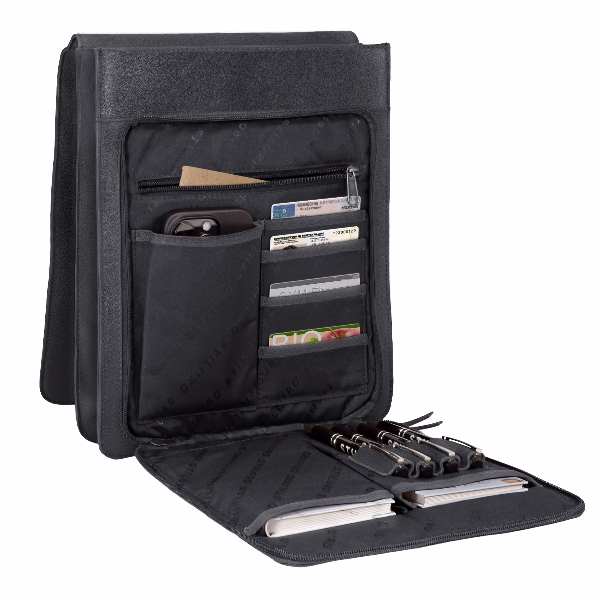 OTTIMA ORGANIZZAZIONE: Interni ben studiati con ampio scomparto principale, tasca con zip, tasche a fessura, porta-penne e scomparti per carte – tutto a portata di mano!