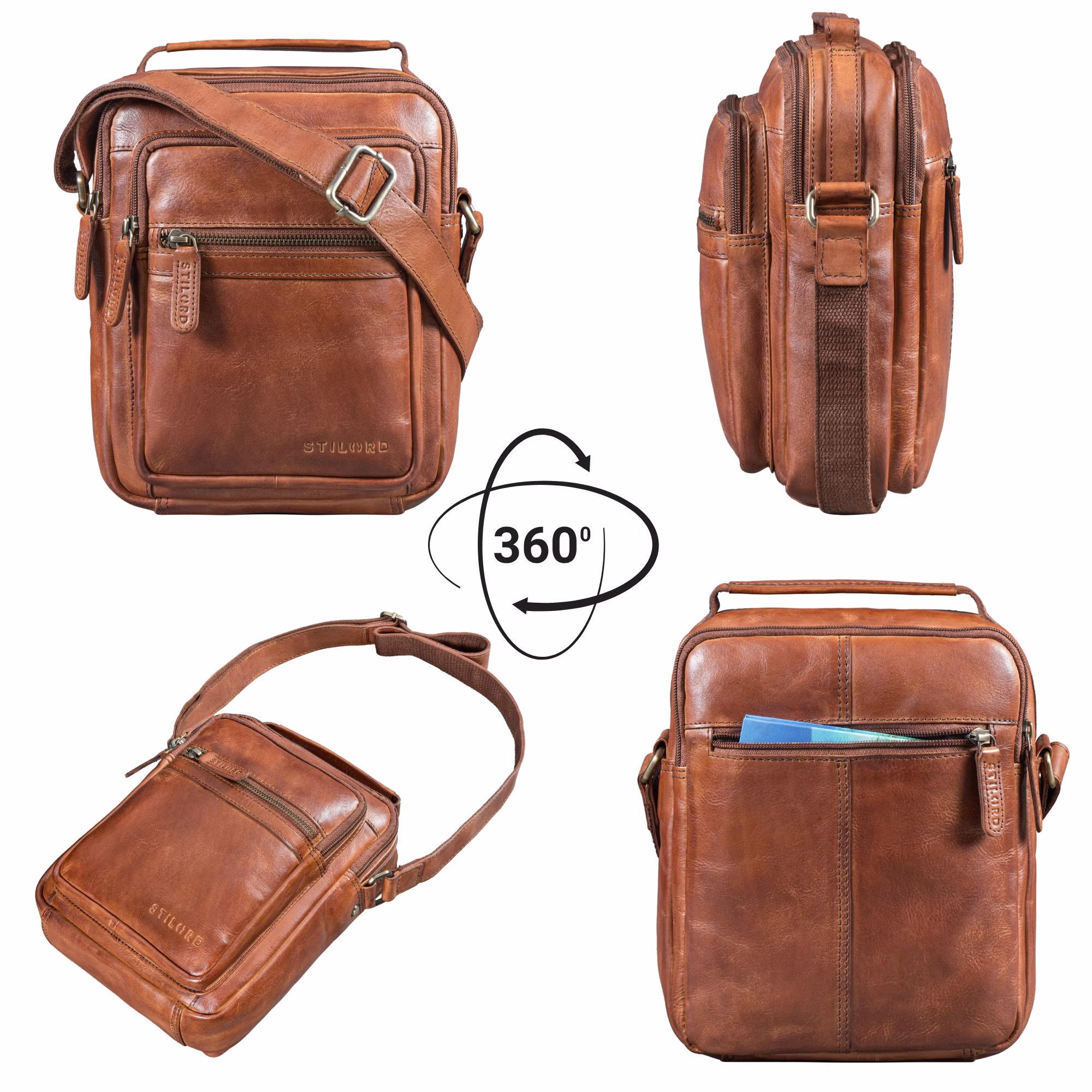 • ORGANIZZAZIONE INTELLIGENTE PER TECNOLOGIA E QUOTIDIANO: Scomparto principale per tablet fino a 10,9 pollici, tasca per smartphone, portapenne, 2 tasche frontali con zip e tasca antifurto sul retro. Tutti gli oggetti essenziali sono ordinati e facilmente accessibili nella compatta borsa da uomo in pelle.