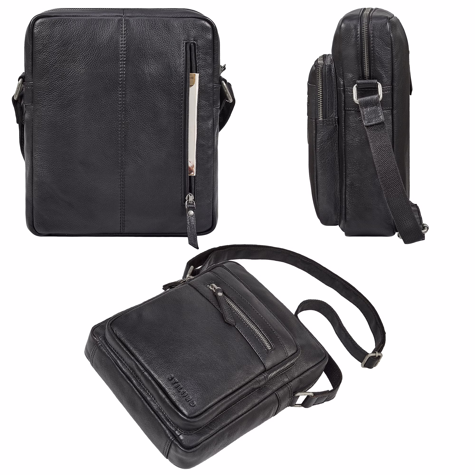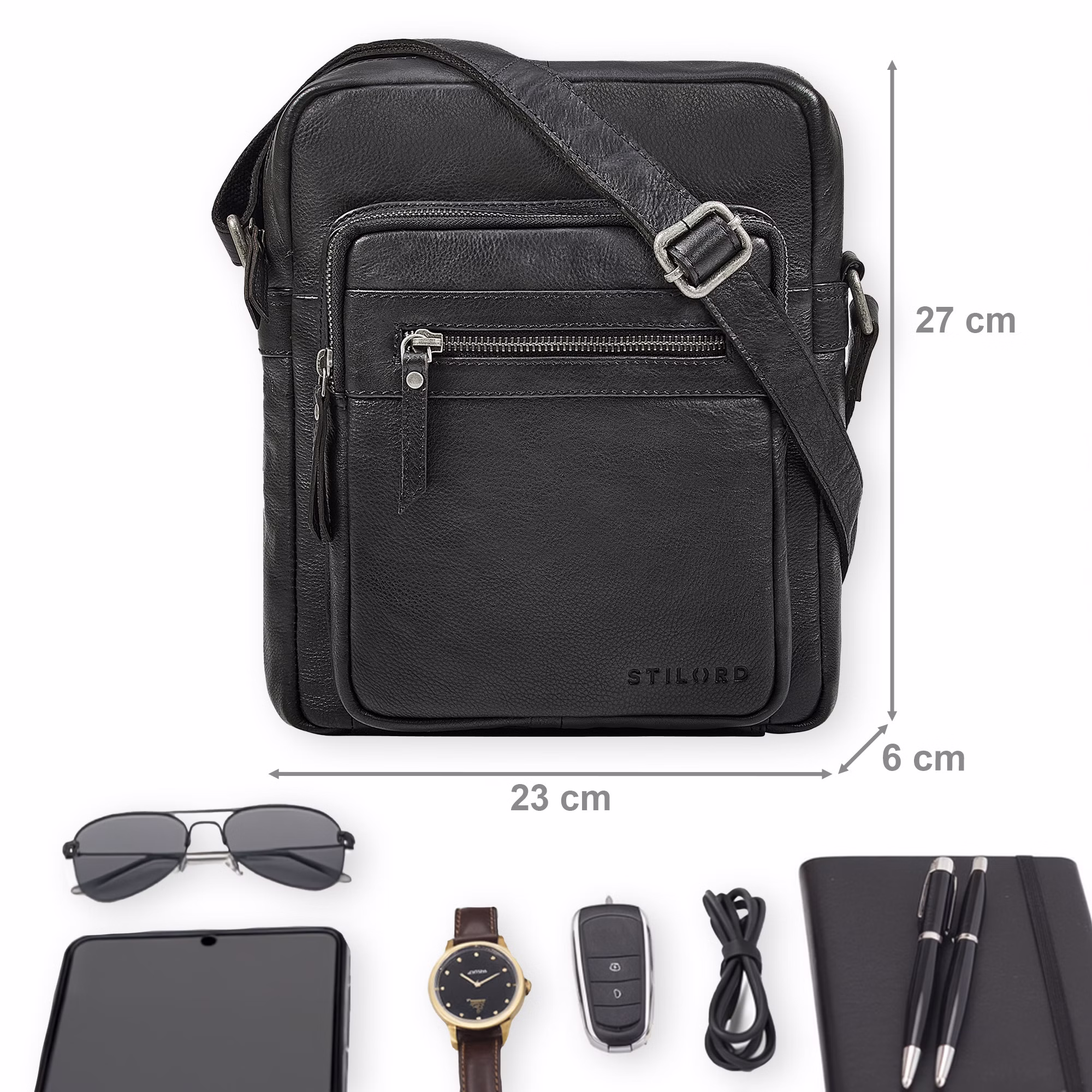 - BORSA IN PELLE DA UOMO STILORD “LYON” PICCOLA: questa borsa a tracolla compatta da uomo in pelle unisce eleganza maschile e praticità. Spazio per tablet fino a 13 pollici, smartphone, penne e piccoli oggetti essenziali, il tutto ben organizzato.