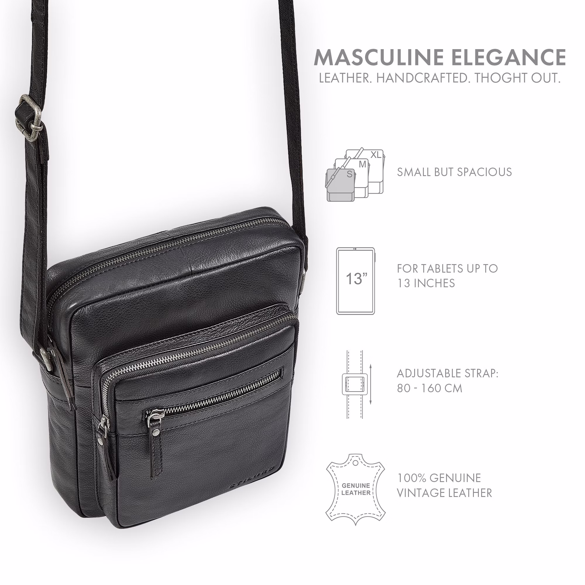 - Trasporto flessibile: tracolla regolabile (80-160 cm), da indossare come borsa tracolla uomo pelle, borsa messenger, borsello uomo tracolla o classica borsa in pelle da uomo.