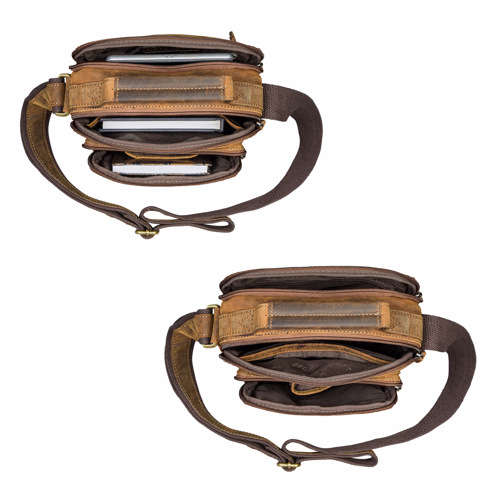 All’interno, la borsa messenger uomo sorprende per la sua organizzazione intelligente e versatile. Offre spazio per una borsa pelle uomo tablet fino a 10.9 pollici, documenti A5 e una bottiglia. Il sistema di scomparti assicura ordine e sicurezza, con pocket antitaccheggio sul retro. Con tracolla pelle uomo vintage regolabile e maniglia superiore, la “Ruben” si adatta con stile a ogni occasione – che sia borsa uomo da viaggio, borsa ufficio uomo pelle o un elegante accessorio per il tempo libero.