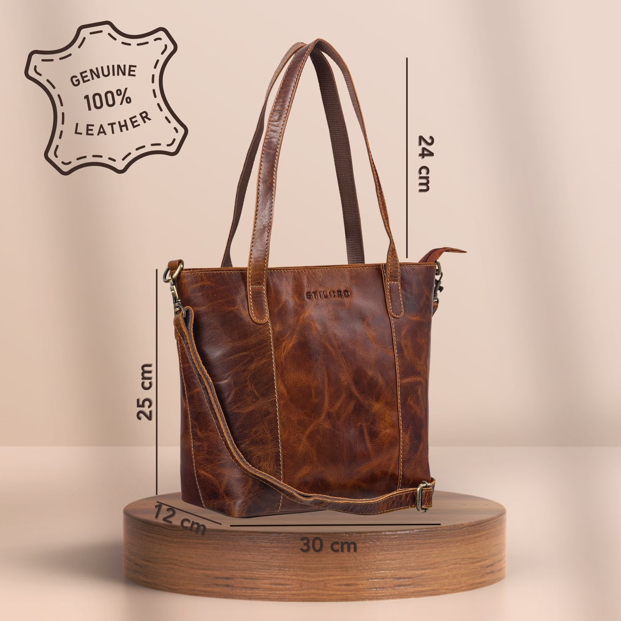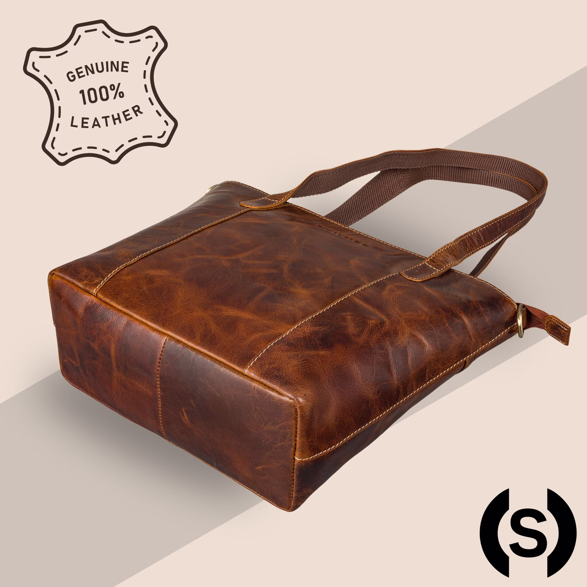 - ELEGANTE BORSA DA DONNA: La borsa vera pelle vintage (30 x 12 x 25 cm, 640 g) offre scomparti intelligenti e una tracolla removibile. Come elegante borsa shopper donna è la borsa donna cuoio ideale con cerniera – elegante e organizzata nella vita quotidiana.