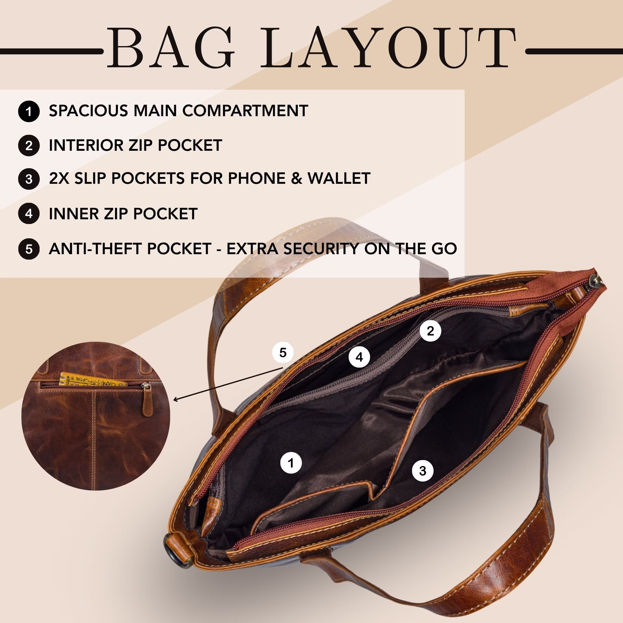 Ordine in eleganza: La borsa di pelle donna offre scomparti smart per laptop, documenti ed essenziali – sempre ben organizzati.