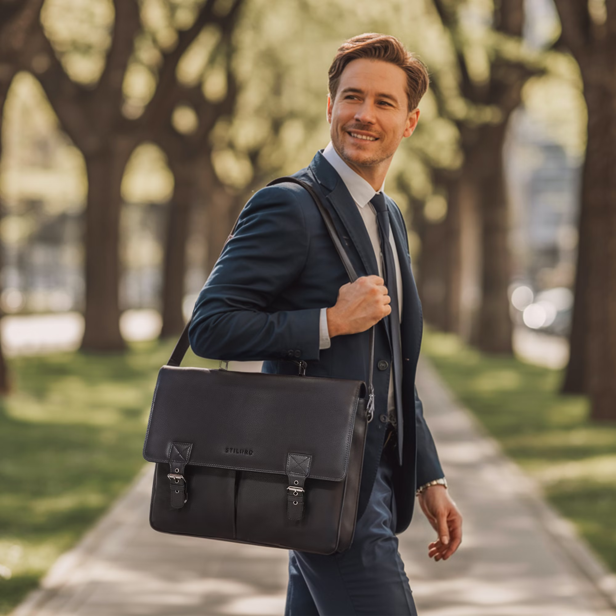 La borsa portadocumenti uomo non è soltanto una borsa cuoio – è un elegante compagno per il lavoro, lo studio e la vita quotidiana. Realizzata in pelle bovina di alta qualità, unisce un’eleganza senza tempo a una robustezza affidabile. La pelle, morbida ma resistente, è piacevole al tatto e rende la borsa pelle non solo un accessorio pratico, ma anche una dichiarazione di stile e qualità. Con la sua suddivisione intelligente e la protezione sicura per laptop e documenti, la business valigetta ufficio pelle per uomini è la scelta ideale per professionisti, insegnanti, studenti e chiunque dia valore all’organizzazione e alla professionalità.
