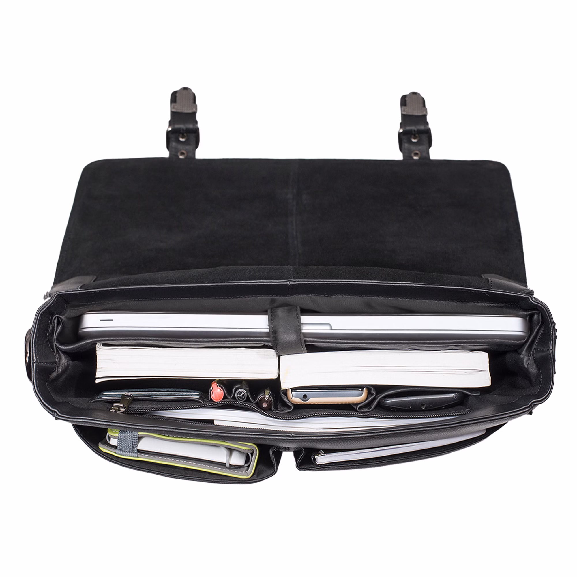 - CARTELLA CON COMFORT: La borsa ventiquattrore uomo vera pelle combina design classico e praticità d’uso. La patta con due fibbie assicura una chiusura sicura, mentre il manico robusto e la tracolla imbottita e rimovibile (90 – 140 cm) offrono diverse opzioni di trasporto.