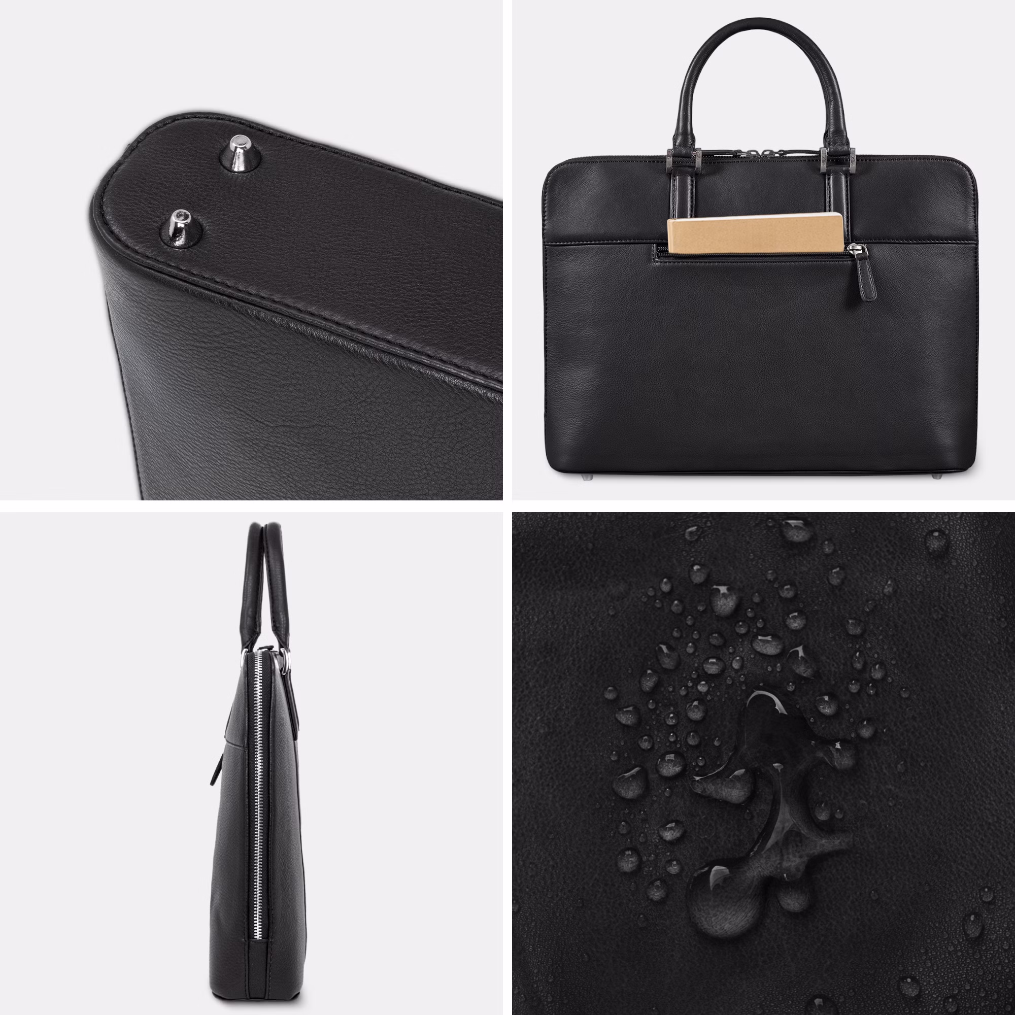 - ELEGANTE & FEMMINILE: Elegante, senza tempo e di qualità – questa borsa pc è sottile e femminile, attira sguardi e sottolinea la tua professionalità. Ideale come portadocumenti donna A4 in pelle con piedini in metallo per un appoggio sicuro ogni giorno.