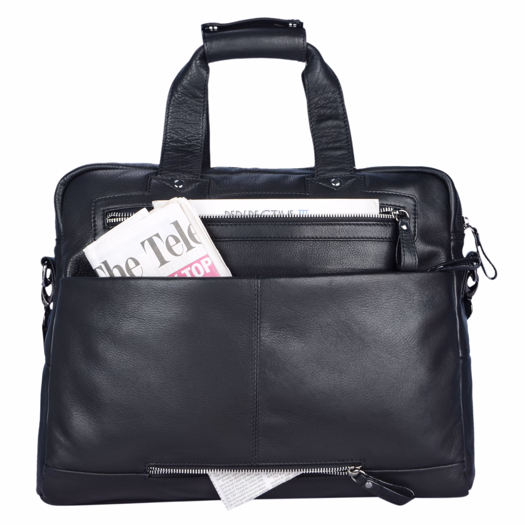 - In vera pelle di vitello, robusta e resistente agli strapazzi | dotata di una tasca imbottita per il trasporto del PC | munita di tracolla regolabile (75-145 cm) + manico