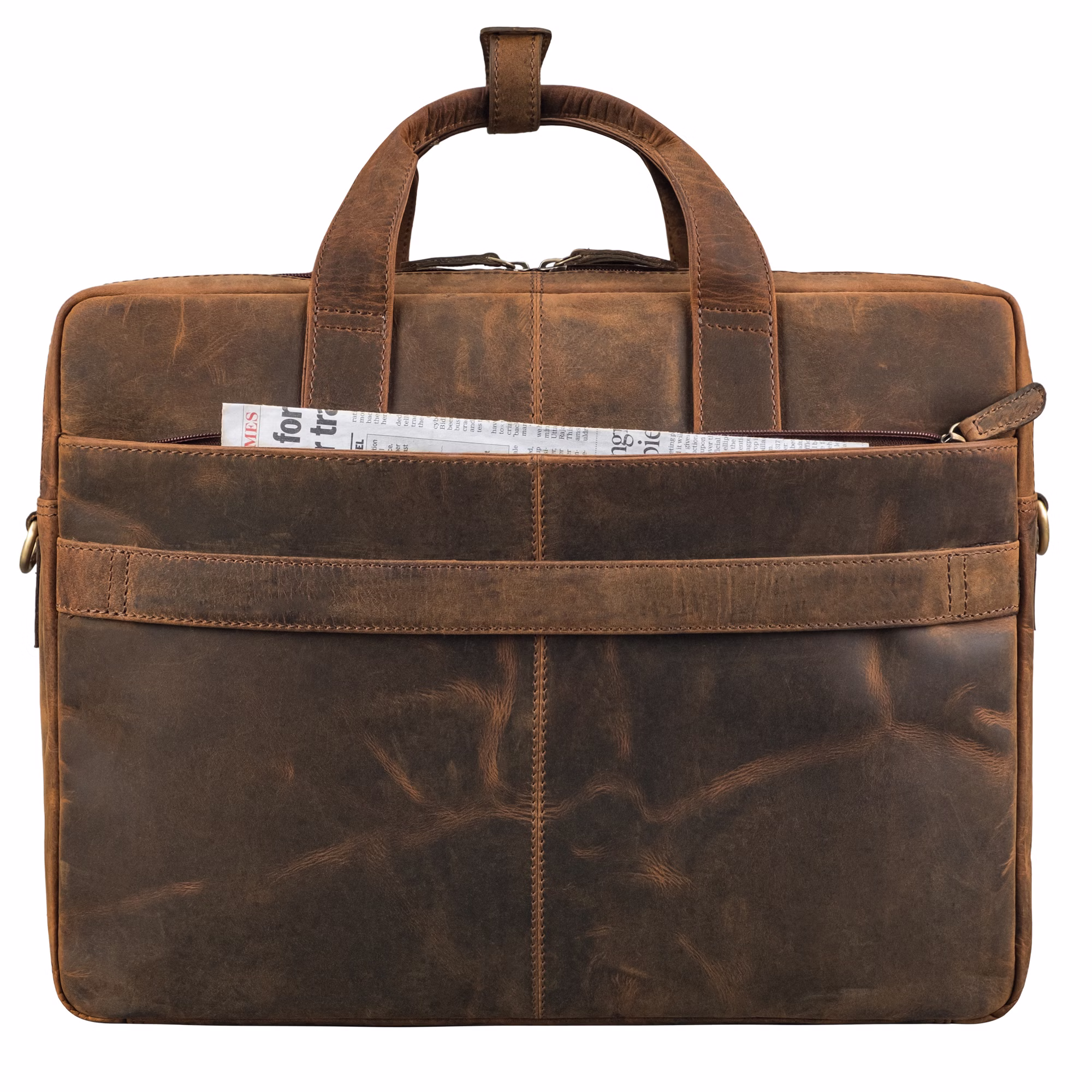 - DETTAGLI: Dimensioni: (LxLxA): circa 42 x 20 x 30 cm | Peso: 1420 grammi | Materiale: pelle bovina | Compatibilità: 1 scomparto imbottito per laptop da 15 | 15,3 | 16 | 17 e 17,3 pollici e Macbook (max. 38 x 28 cm), cartelle A4 larghe