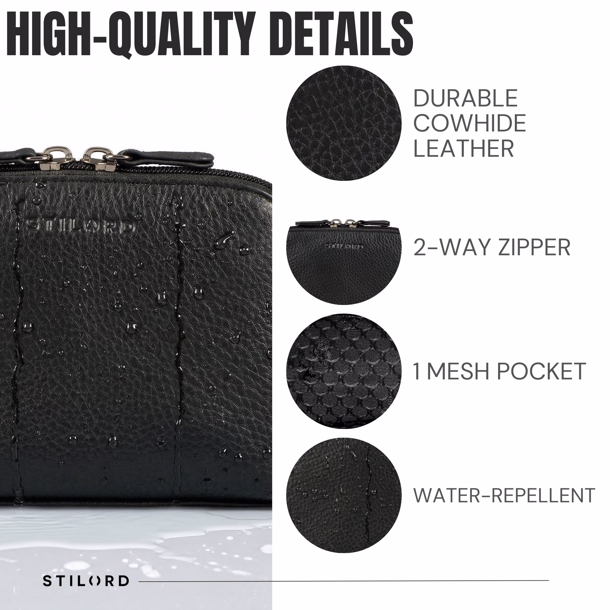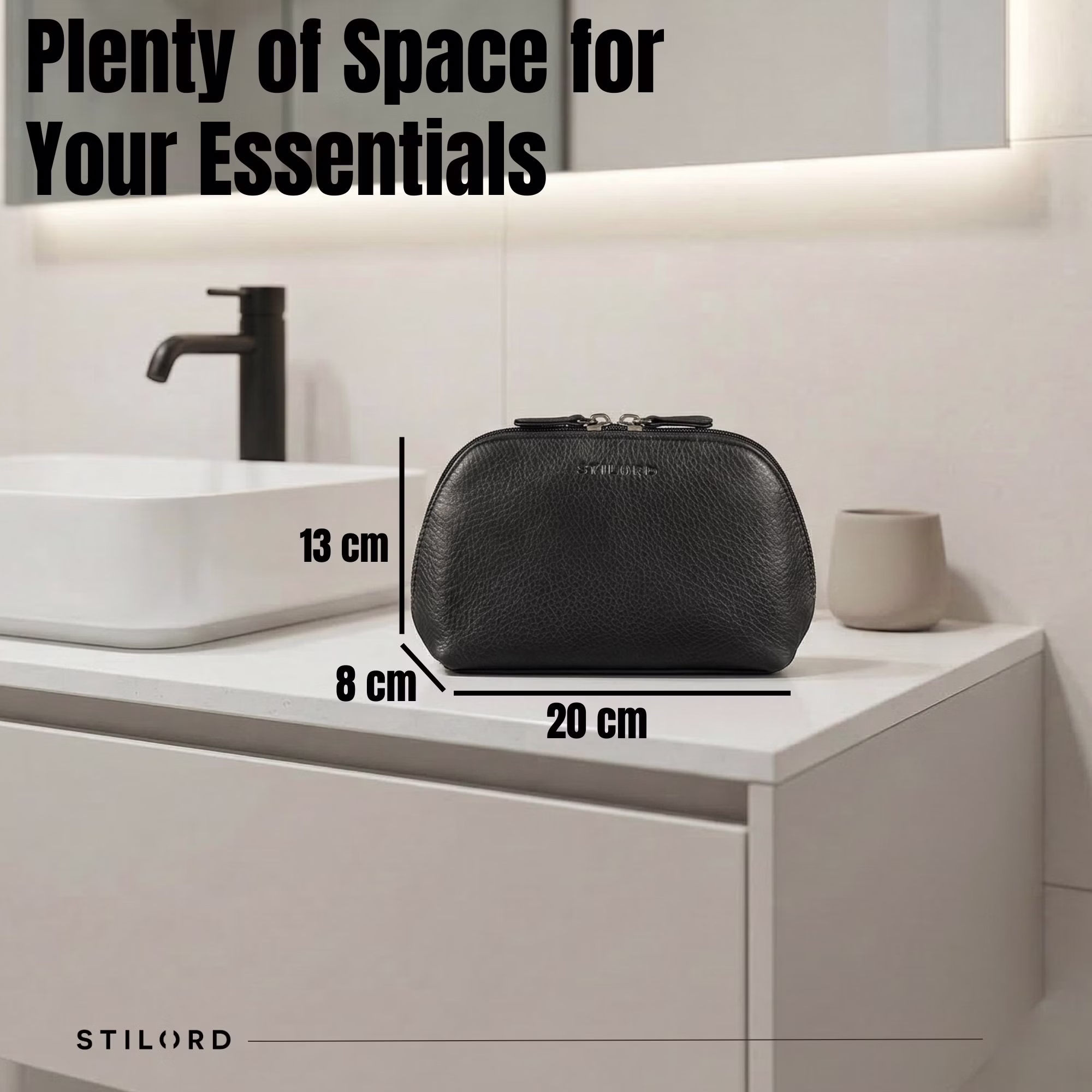 - DETTAGLI: Misure (LxPxH): ca. 20 x 8 x 13 cm | Peso: ca. 115 g | Modello: Elma | Materiale: vera pelle | Produttore: STILORD | Compatibilità: cosmetici, toilette, rasatura | Caratteristiche: tasca con zip e scomparto in rete