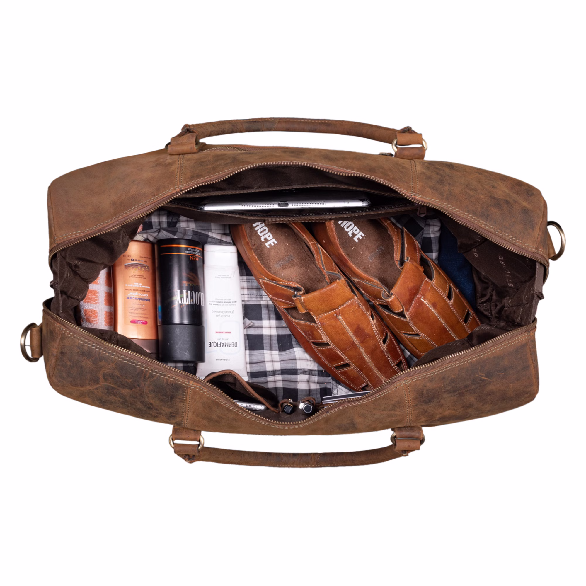 - "Iska" l'elegante compagna di viaggio: La classica pelle vintage e il design elegante rendono la borsa bagaglio a mano un vero e proprio richiamo per ogni viaggio.
