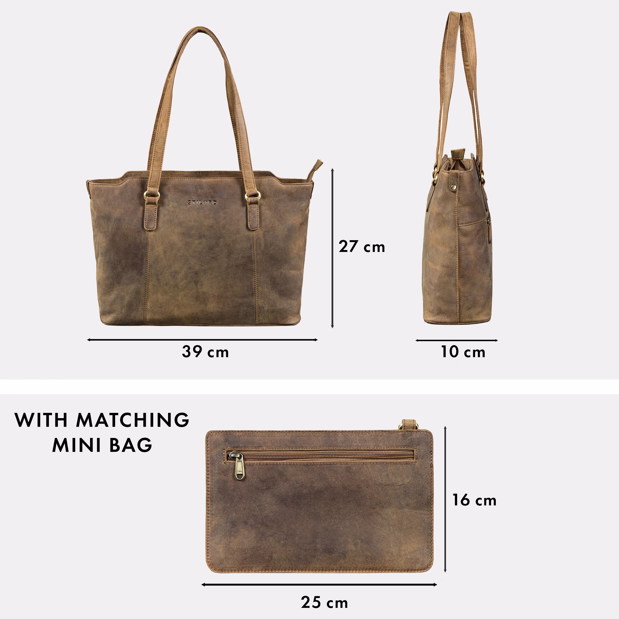 Il robusto zip sullo scomparto principale protegge i tuoi oggetti essenziali, mentre i piedini sul fondo garantiscono che la borsa rimanga stabile. L’elevata qualità della pelle, il design senza tempo e i dettagli ben studiati fanno di "Livia" un set indispensabile per lavoro, passeggiate in città o viaggi.