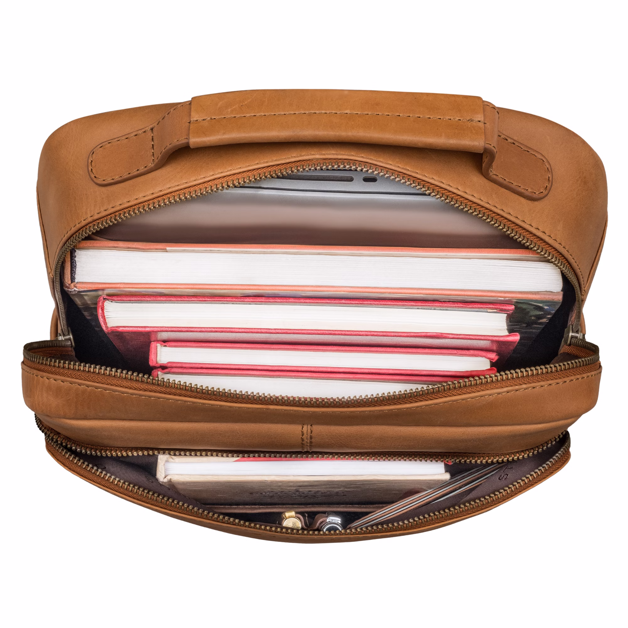 - Lo zaino elegante in pelle è robusto e impermeabile. Puoi contare sul fatto che il tuo zaino sarà protetto in modo ottimale anche in condizioni meteorologiche avverse.