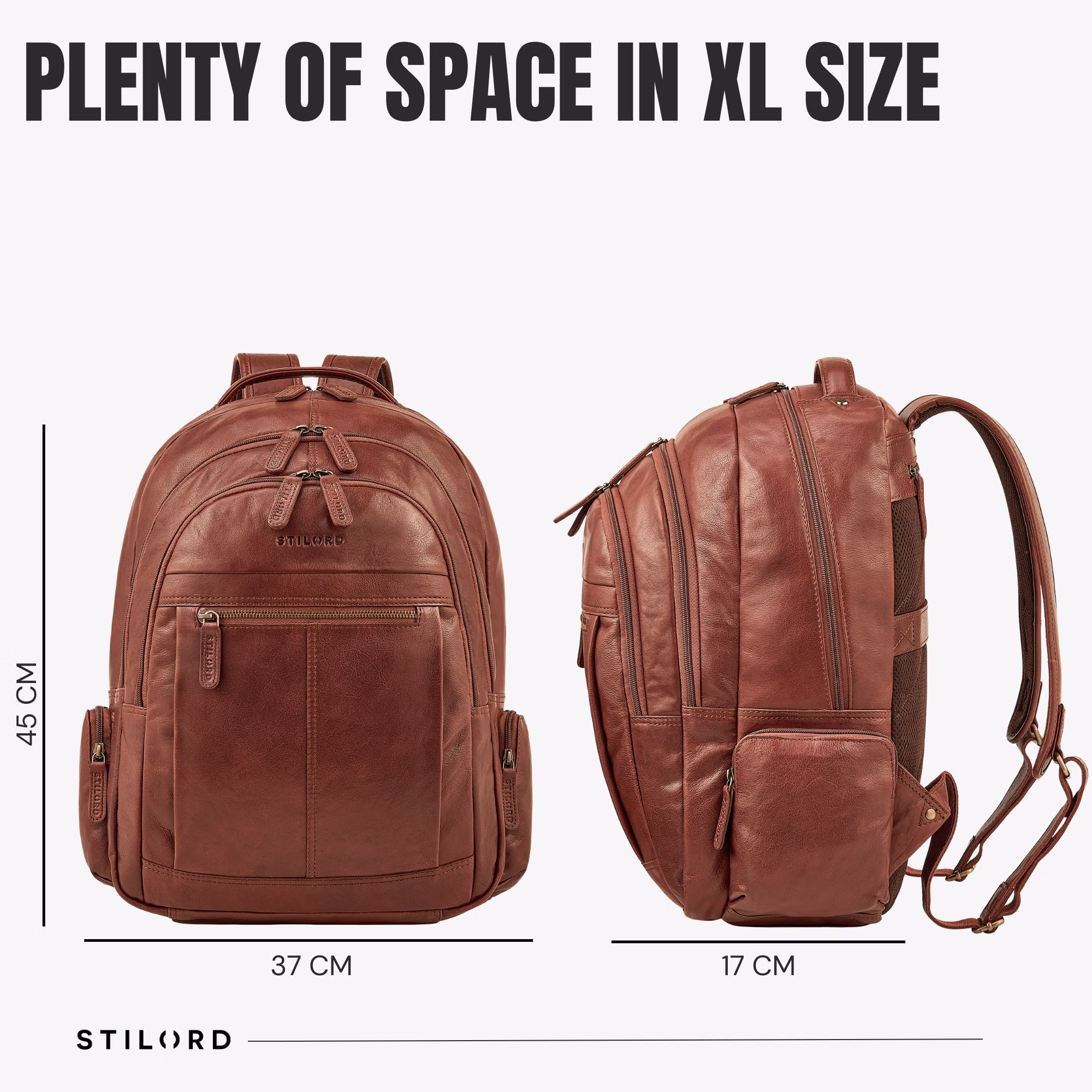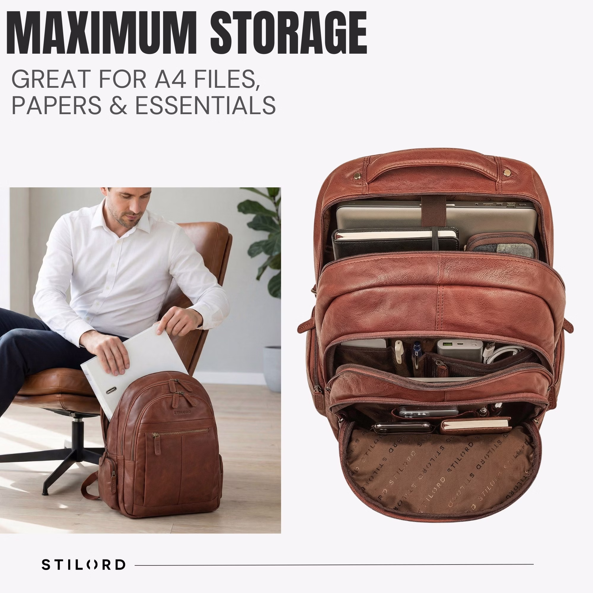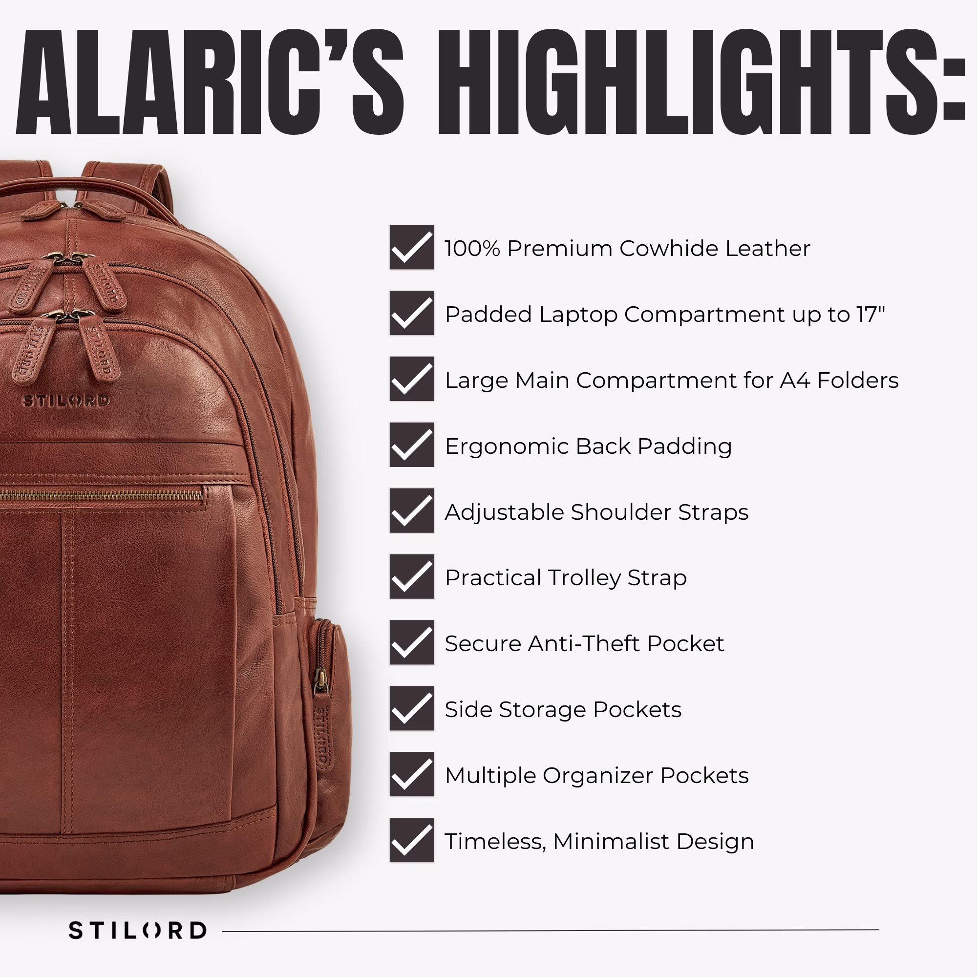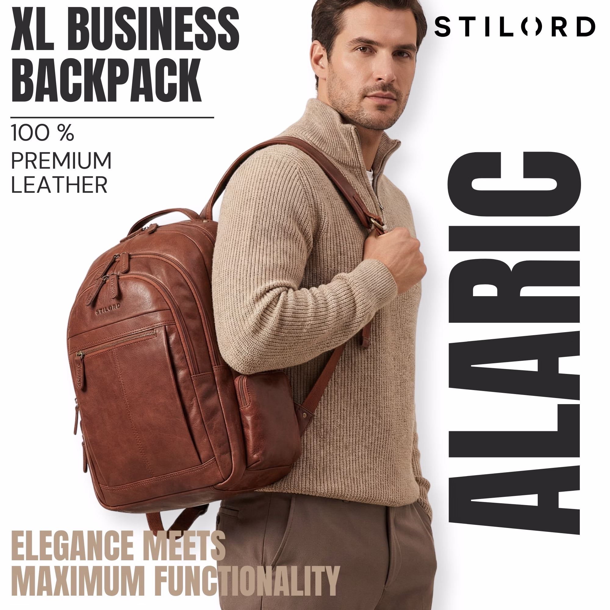- TUTTO IN SINTESI: Dimensioni (LxPxA): 37 × 17 × 45 cm | Peso: 1250 g | Materiale: pelle bovina | Modello: "Alaric" | Produttore: STILORD | Compatibilità: scomparto per laptop fino a 17 pollici, cartelle DIN A4 di grandi dimensioni