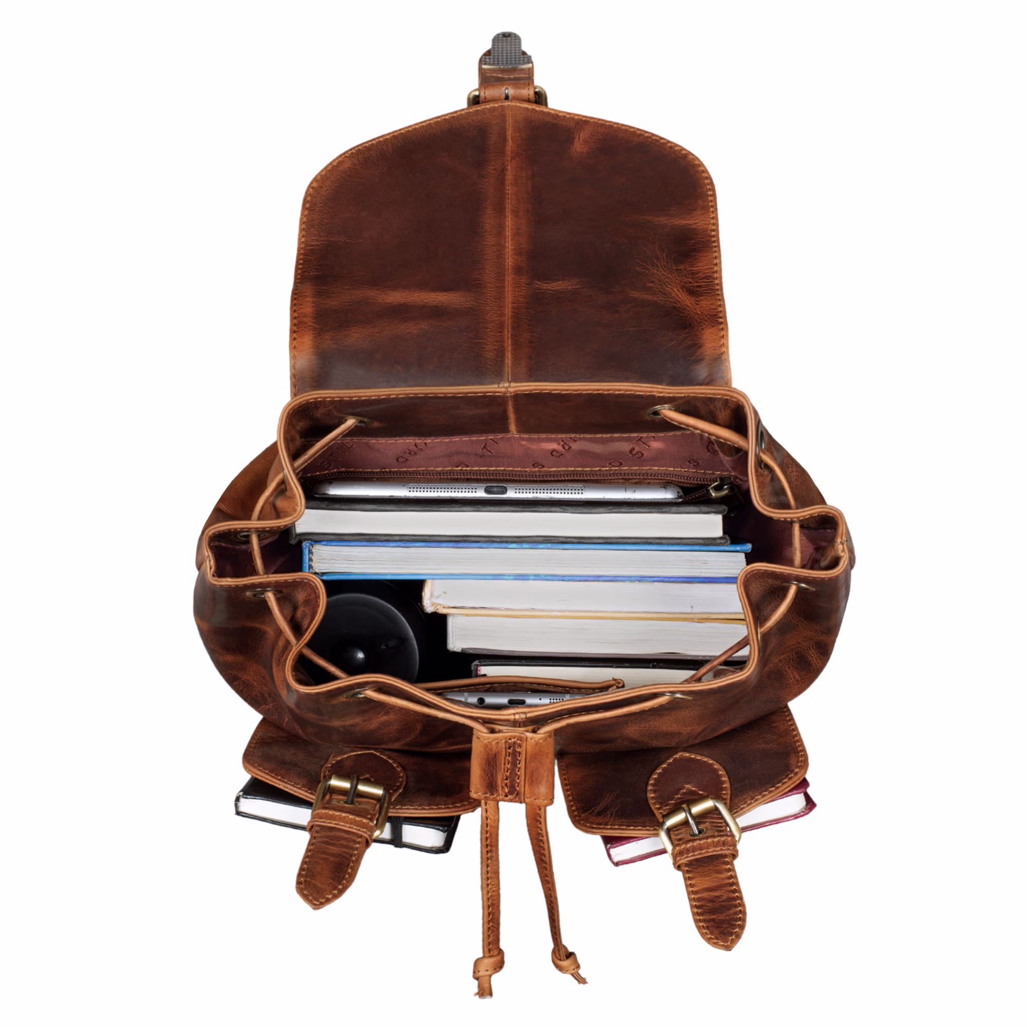 Daypack zaino in pelle vintage grande - tutto in un colpo d'occhio: