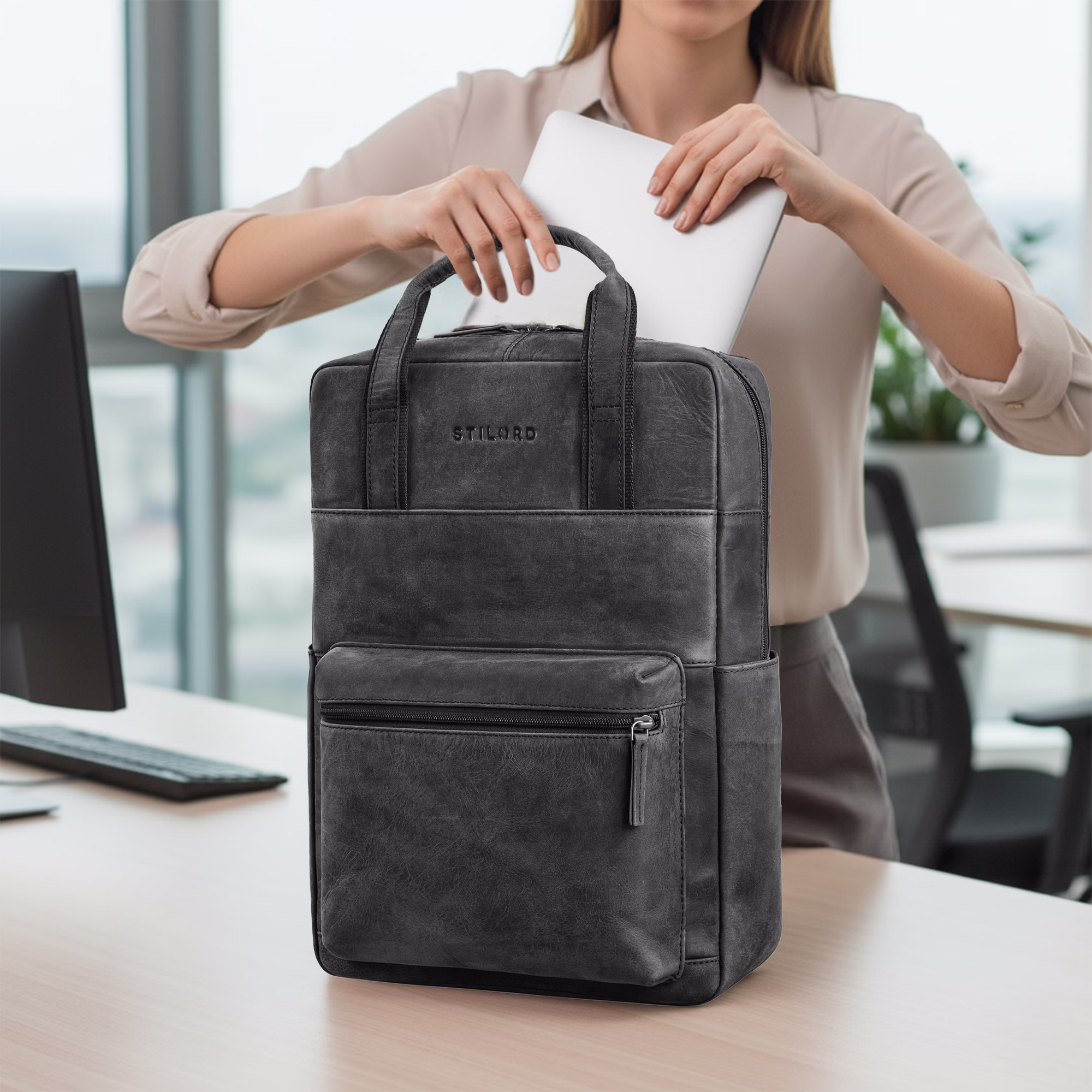 - DETTAGLI: (LxPxA) ca. 35 x 17 x 40 cm | Peso: 955 g | Modello: Lilo | Materiale: pelle bovina naturale | Marchio: STILORD | Compatibilità: laptop da 15,6 pollici | Caratteristiche speciali: schienale imbottito, rete traspirante, scomparto imbottito per laptop, sacca antipolvere