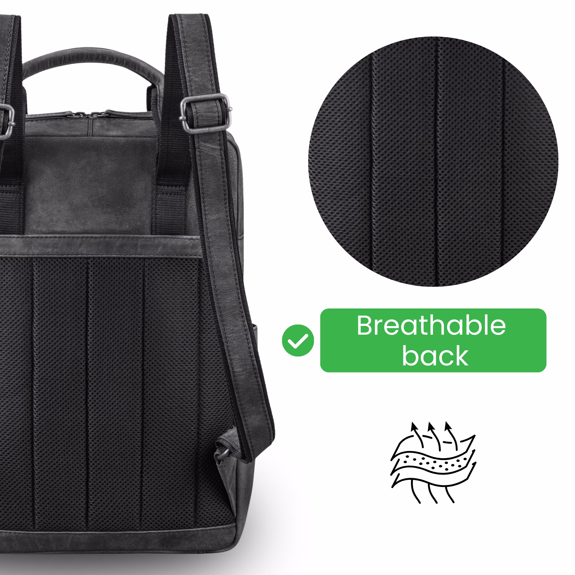 - MASSIMO COMFORT: Doppia cerniera per un’apertura flessibile | Spallacci larghi e regolabili (53–95 cm, 3 cm di larghezza) per una vestibilità ergonomica | Manici robusti e schienale in rete traspirante rendono il zaino da donna in pelle particolarmente comodo