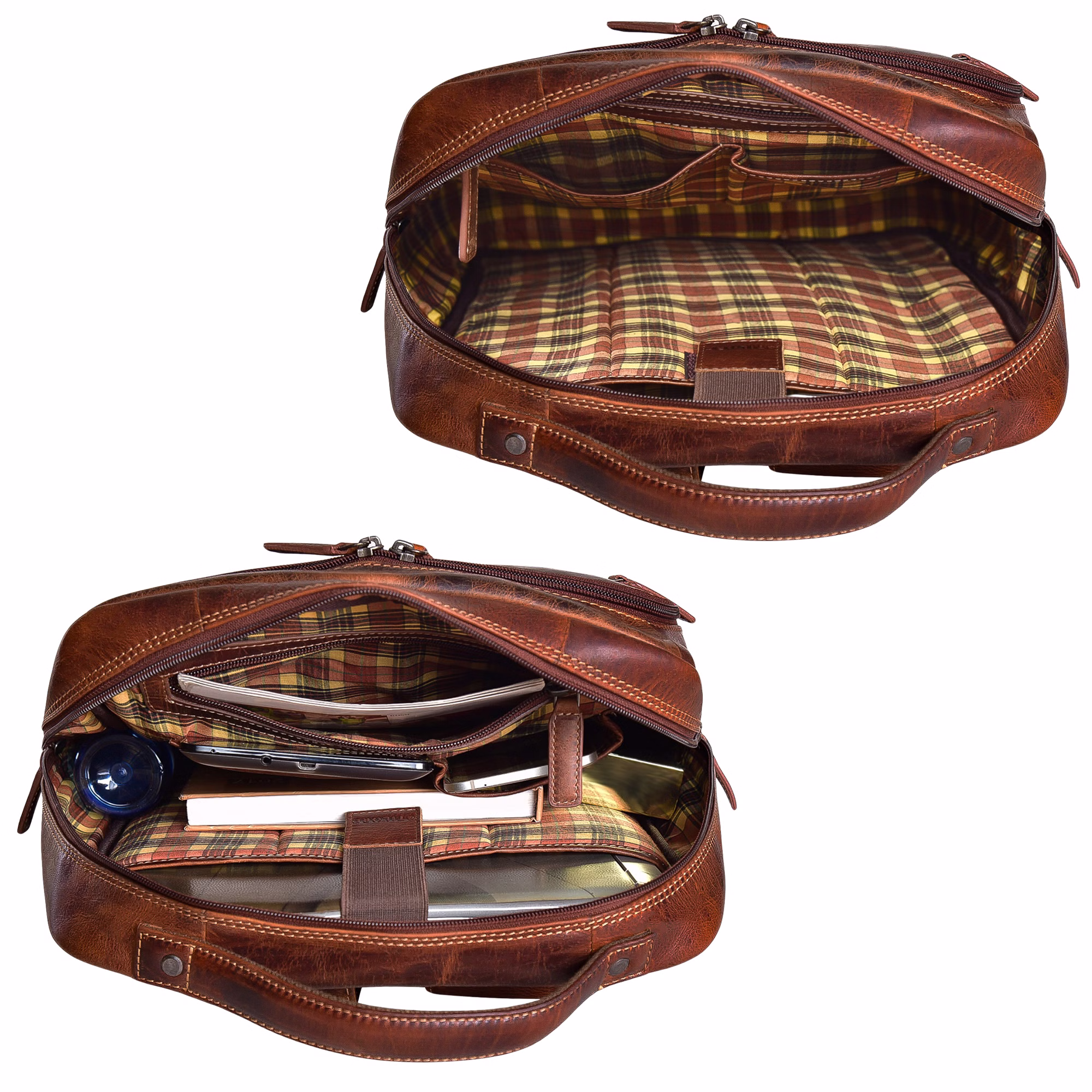 - TUTTO A PORTATA DI VISTA: Dimensioni (LxLxA): 29 x 12 x 41 cm | Peso: 930 grammi | Materiale: vera pelle bovina | Tutto a portata di mano: 1x ampio scomparto principale per documenti e cartelle A4, incluso 1x scomparto per laptop da 15,6 pollici, 2x tasche per piccoli oggetti e 1x tasca con zip per oggetti di valore | 3x tasca frontale con zip per un accesso rapido