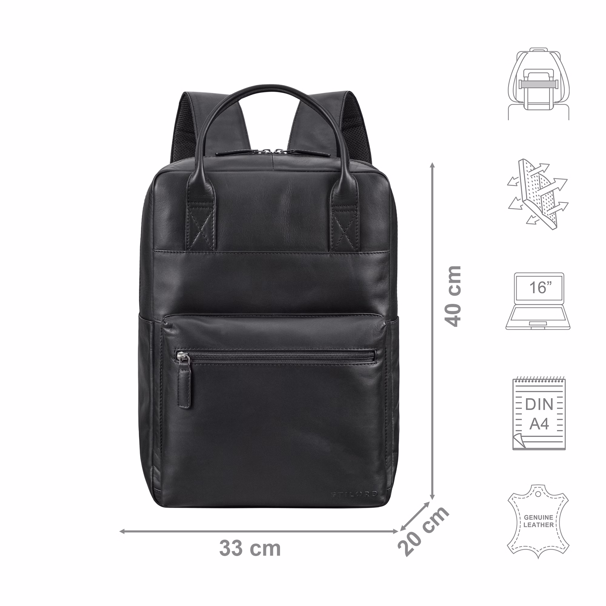 - Dimensioni: 33 x 20 x 40 | Peso: 1030 g | Modello: "Topaz" | Materiale: pelle naturale | Marca: STILORD | Compatibilità: laptop fino a 15, 15.6,16 pollici | Caratteristiche: schienale imbottito, cerniera da entrambi i lati.