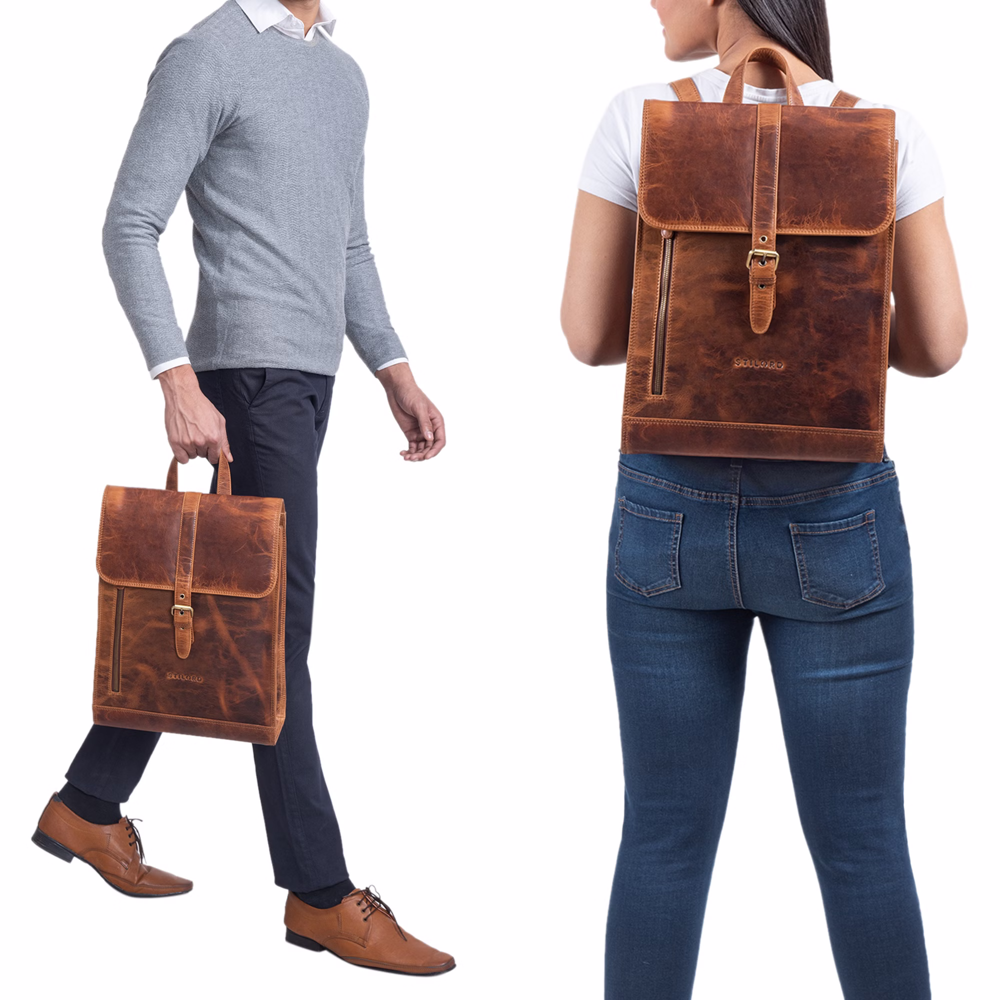- CARATTERISTICHE SOFISTICATE, UN SACCO DI SPAZIO DI ARCHIVIAZIONE: Scomparto principale extra large per piccole cartelle A4, libri e laptop, 100% vera pelle in un naturale look vintage, comfort di trasporto ergonomico con spallacci regolabili - la moderna tendenza dello zaino è così adatta al business!