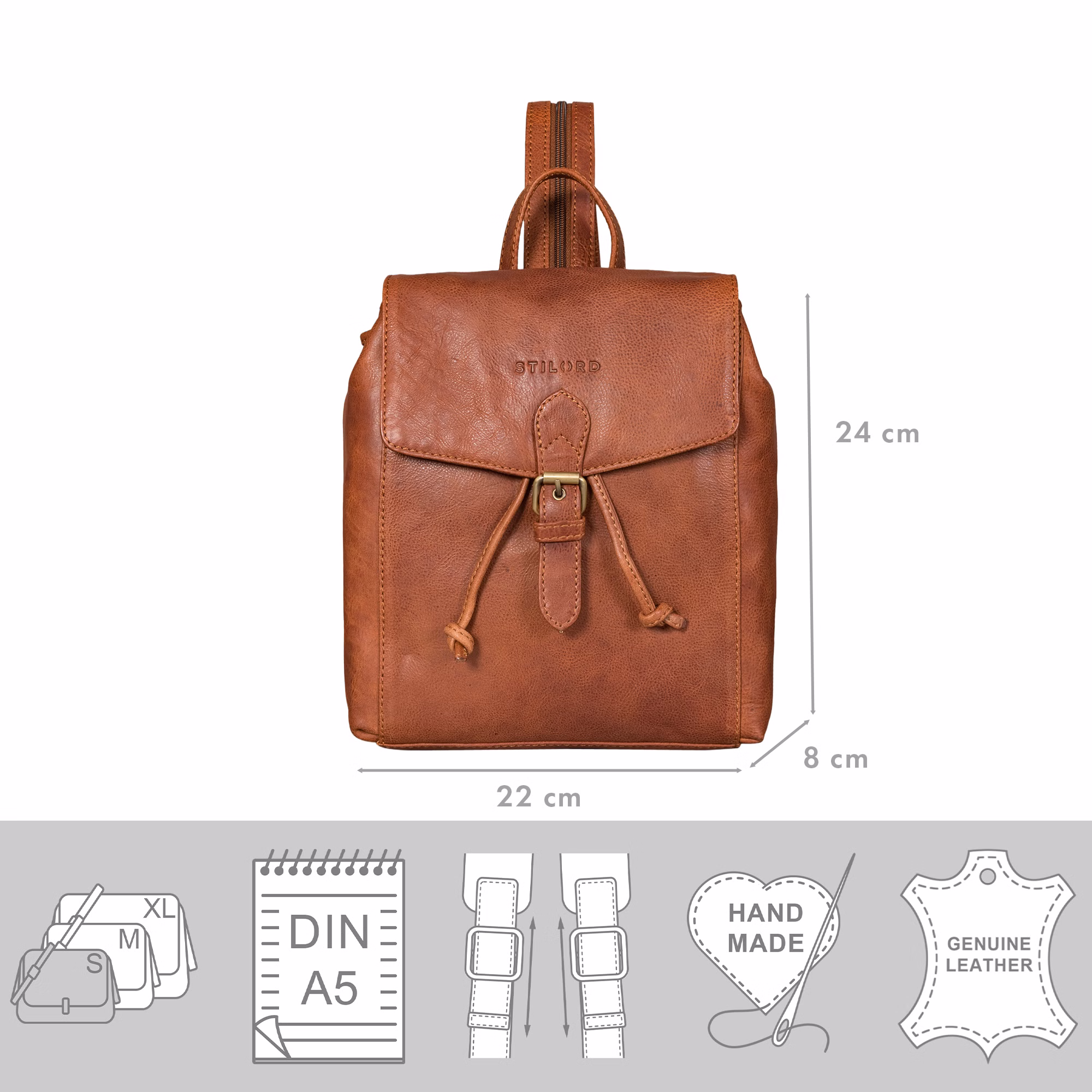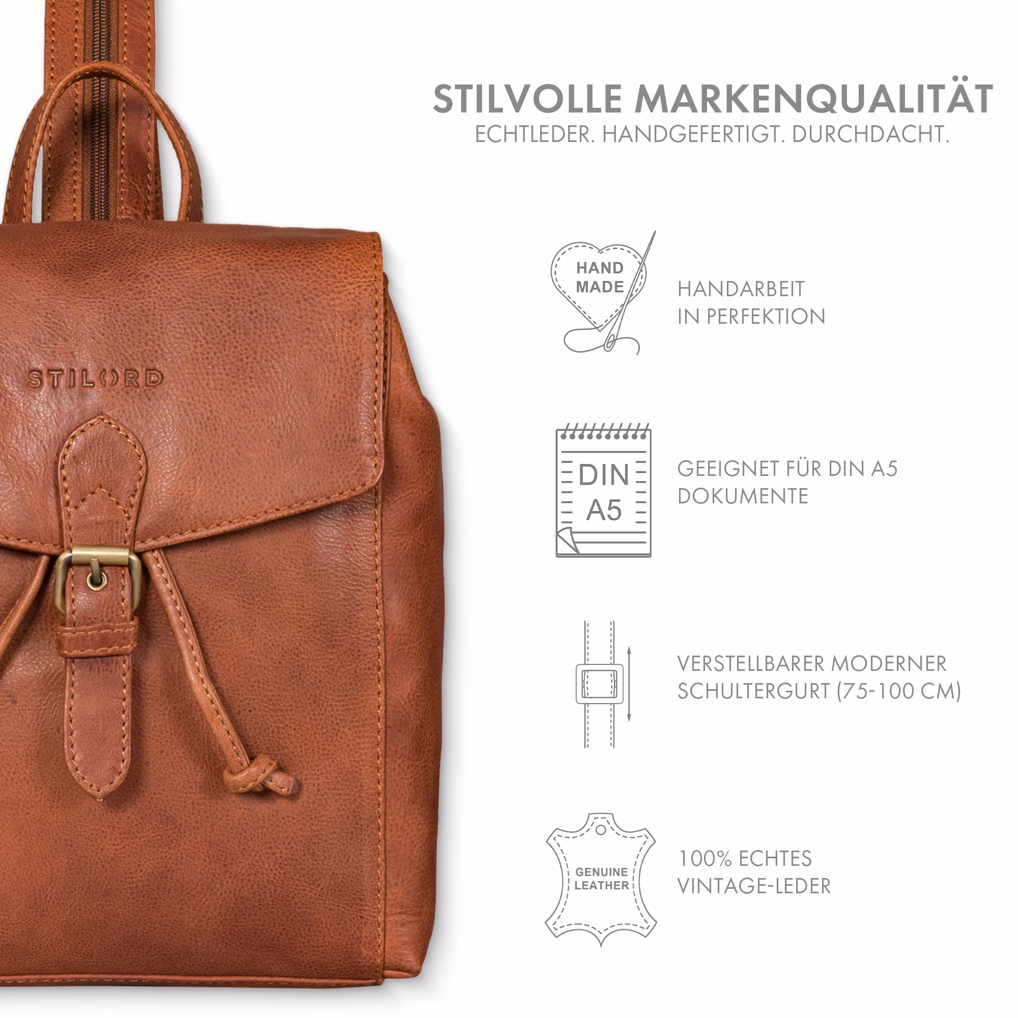 - Dimensioni (LxLxA): circa 22 x 8 x 24 cm | Modello: "Alice" | Materiale: vera pelle | Tipo di pelle: pelle bovina | Peso: 440 grammi | Produttore: STILORD | Spazio per documenti DIN A5 nello scomparto principale