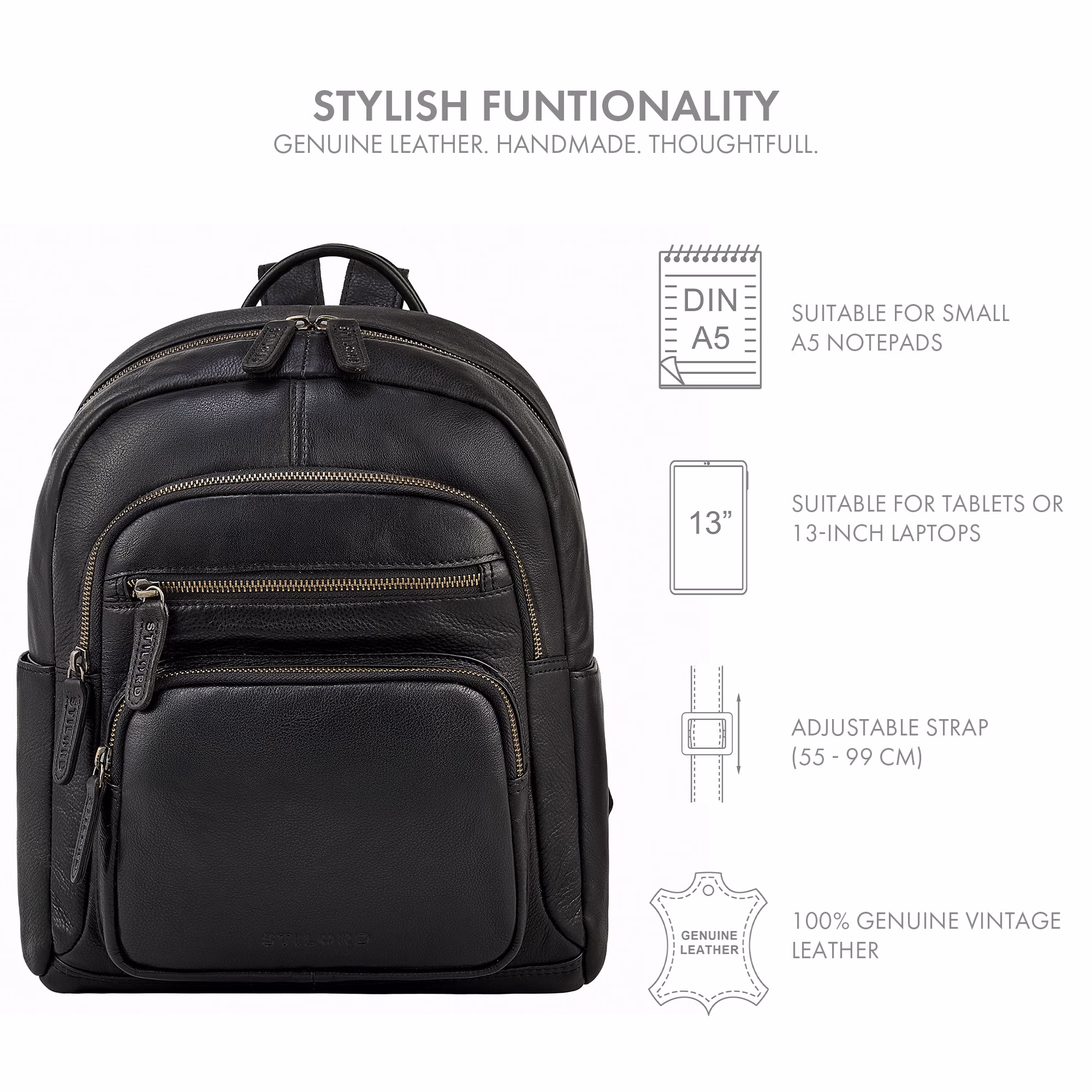 - DETTAGLI: Dimensioni (LxPxA): 26 x 11 x 31 cm | Peso: 915 g | Modello: "Smilla" | Materiale: pelle bovina naturale | Marca: STILORD | Compatibilità: laptop, tablet da 13 pollici